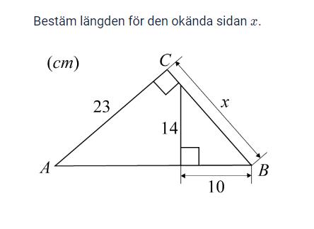 I den stora triangeln är sidan den som går mellan den räta vinkeln och vinkeln .