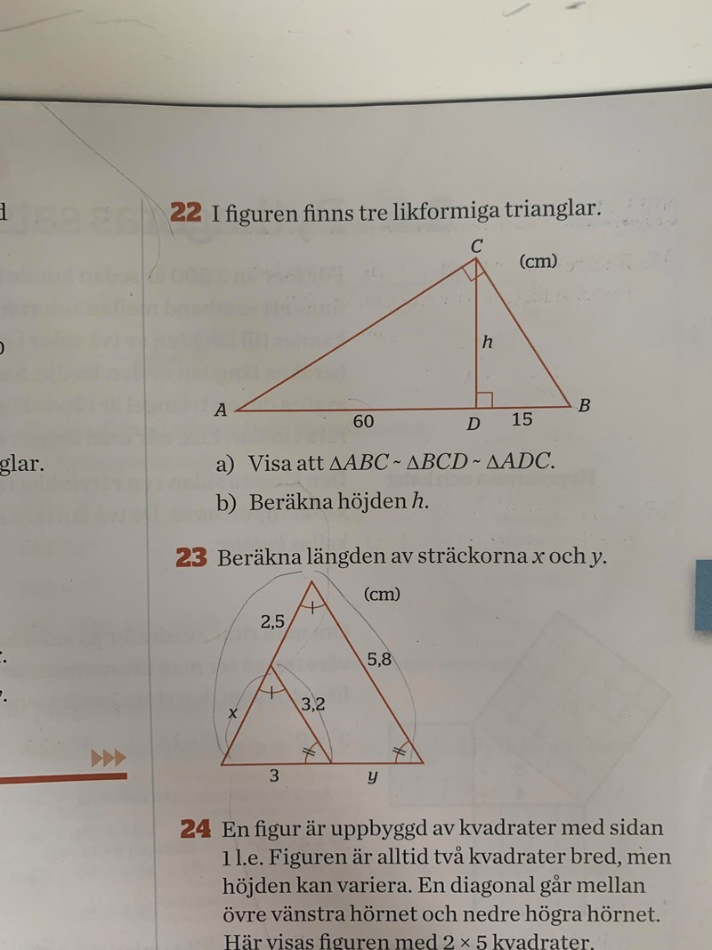 Hur kan du använda de angivna måtten för att ställa upp likformighetssamband, ett för x och ett för y?