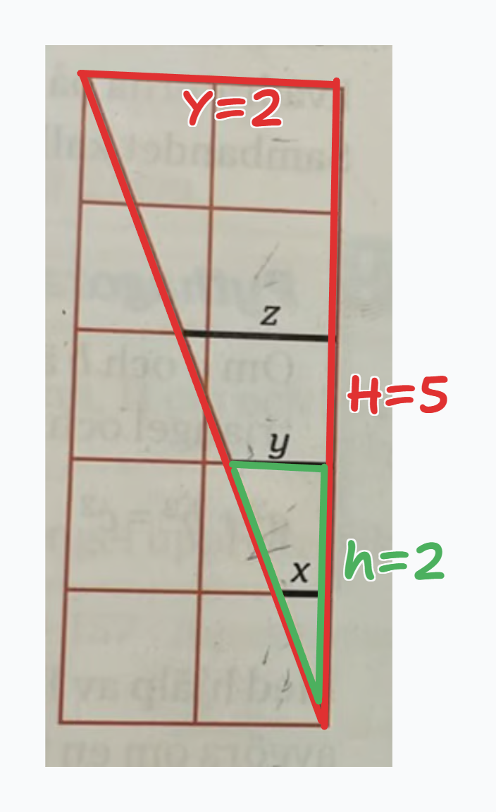 Så här skulle jag räkna ut y (för rektangeln 2x5), alltså uppgift (b):