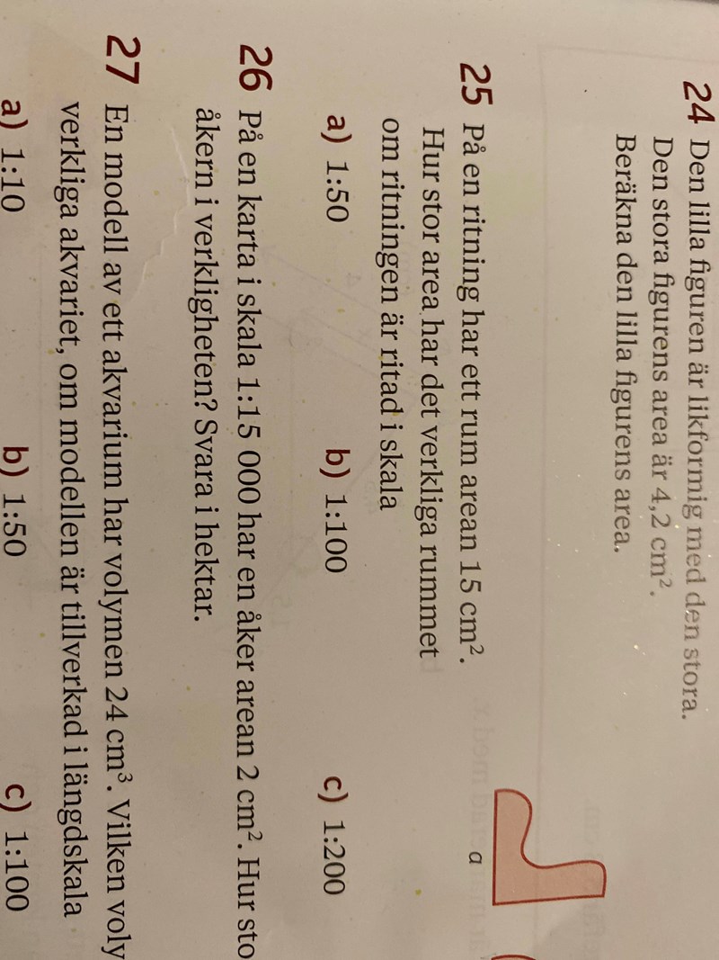 Tips: Tänk att rummet har måtten 5x3 cm på ritningen, dvs längden är 5 cm och bredden är 3 cm.