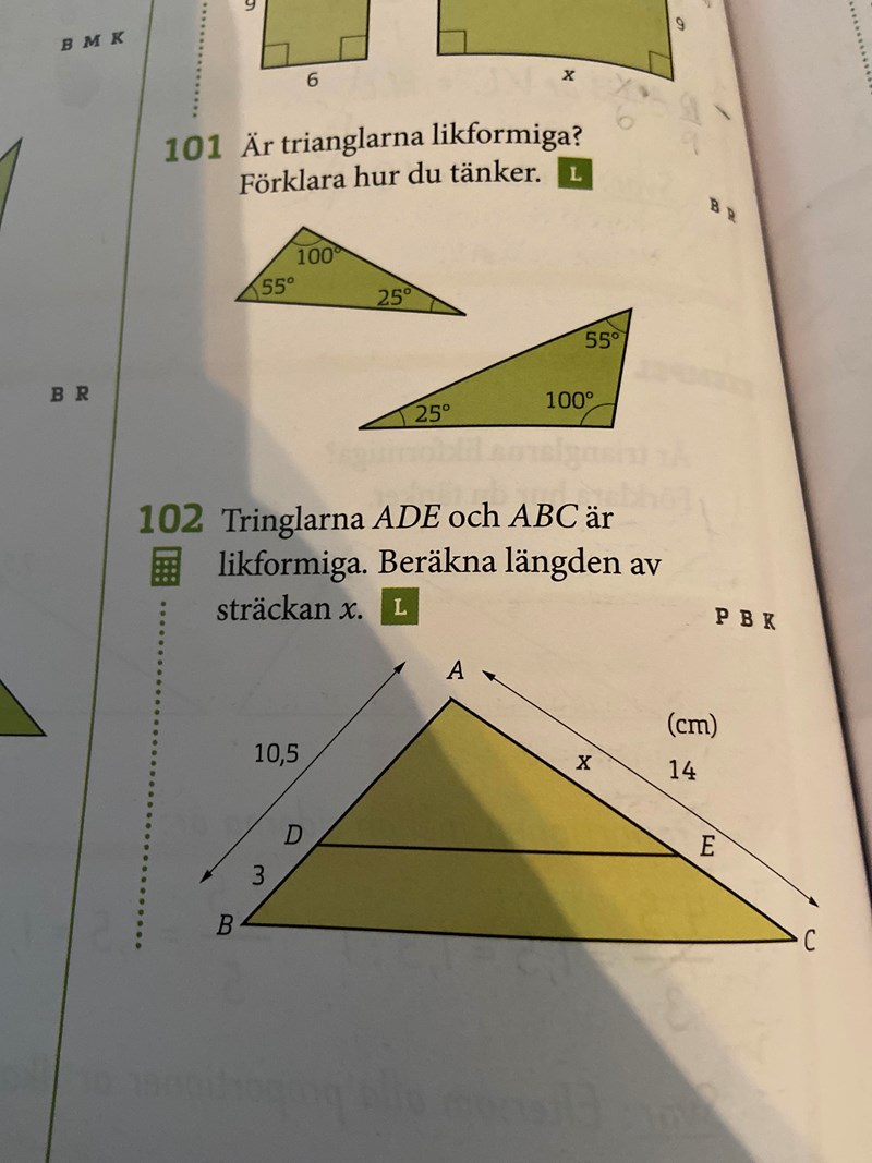 jakobpwns skrev:Håller du med om att x/14 = DA/10,5 ? Kan man se/räkna ut från figuren vad DA är?