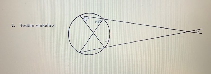 Vinkeln 43 hör till en cirkelbåge om man drar skänklarna till cirkeln.