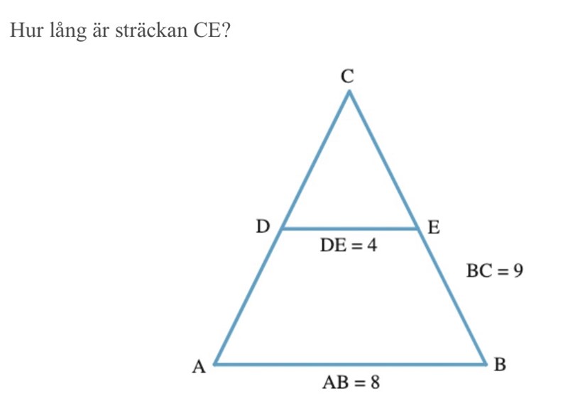 Observera att det står att sträckan BC är 9.