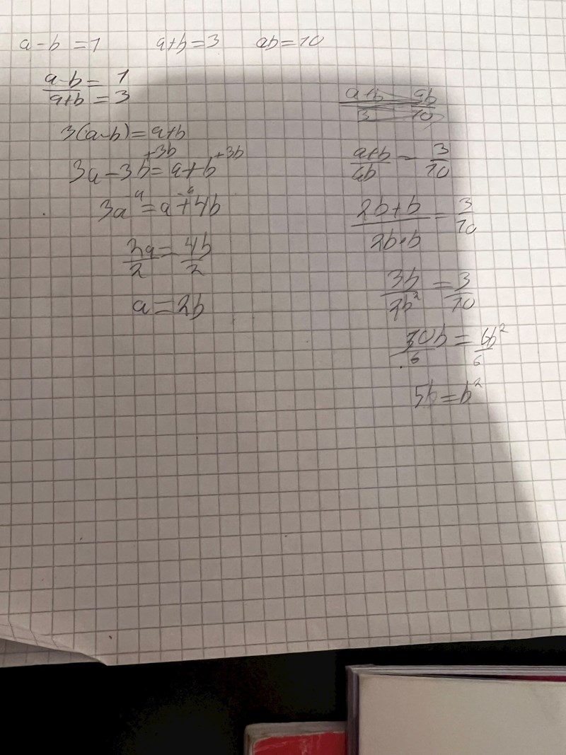 Jag fick att 5 =b upphöjt till två men i facit så står det att b=5 jag förstår inte vad jag har gjort för fel