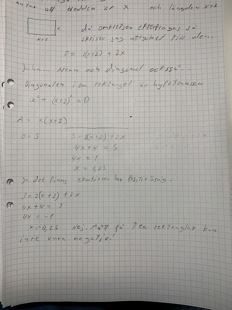 Så Ja. Jag uppskattar att kolla inom svaren. Men de begränsningar jag ser är väl att i omkretsen så får X inte vara större än eller mindre än 0,25. Nej det låter fel!