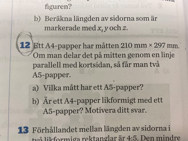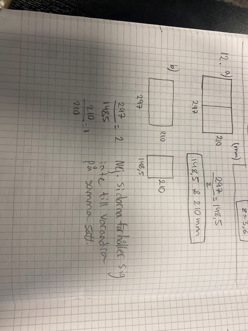 Dela den korta med den långa sidan, både för A4 och A5. Vad blir resultaten?