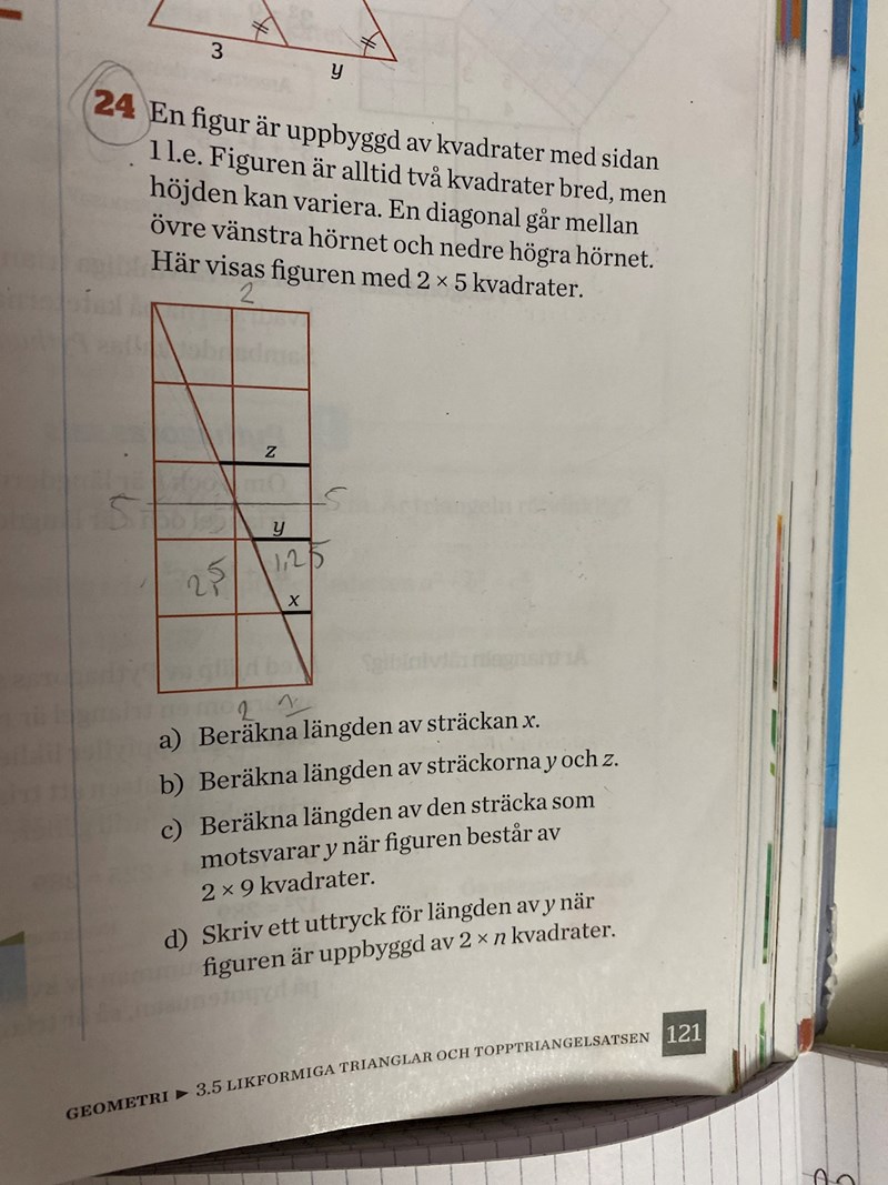 Hej! tack för hjälpen, nu löste jag den. men jag är fortfarande osäker på om jag förstår. Hur vet jag säkert att den lilla triangeln är likformig med den stora?