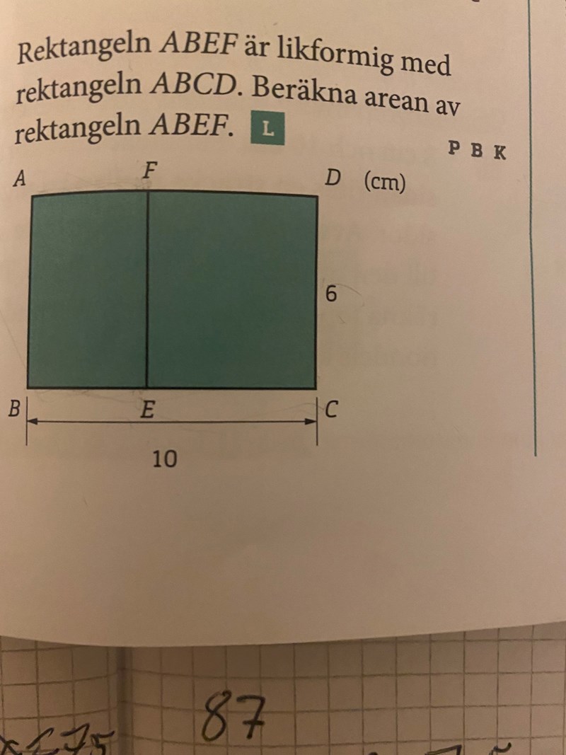 Kvoten mellan långsidan av ABCD och ABEF ska vara samma som kvoten av kortsidan av ABCD och ABEF