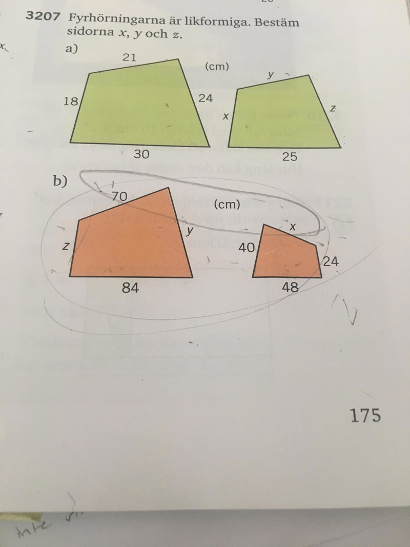 84 samma med Z 40/z= 48/84, men svaret jag får blir inte samma. Y ska bli 70cm och Z ska bli 42cm.