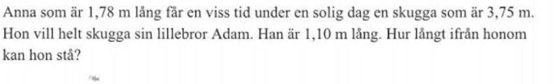 Men x är inte svaret på uppgiften. x är längden av Adams's skugga.