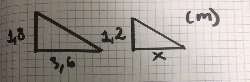 Kersti är 180 cm lång och får en viss solig tid på dagen en skugga so är 3,6 m lång. Hon skuggar då helt sin lillasyster som är 120 cm lång. Hur långt från henne kan hon stå som mest?