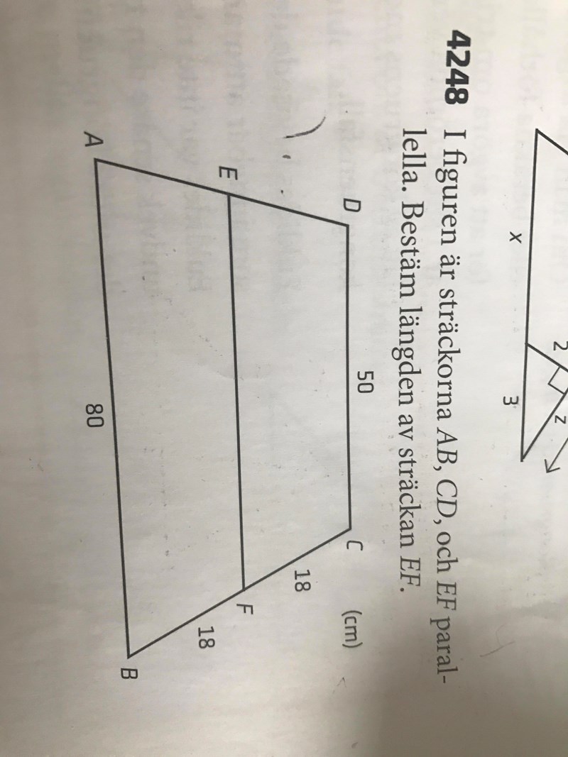 Har försökt med denna jättelänge genom att dividera längderna enligt likformighet men får inte fram rätt svar. Enligt facit ska det vara 65cm. Någon som kan hjälpa mig?
