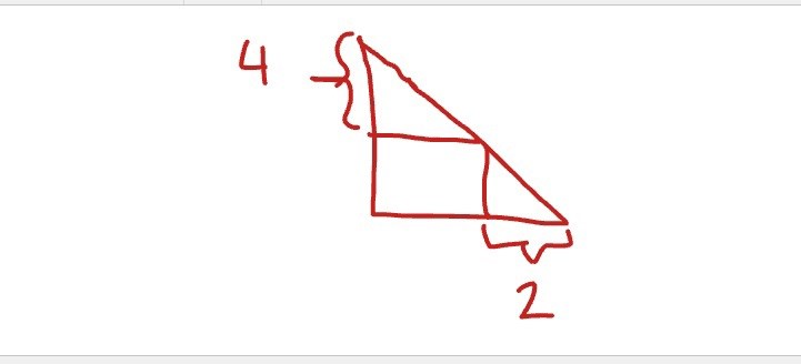 Om fyrkanten i mitten föreställer en kvadrat, och vi kallar kvadratens sida x, så ger likformighet att 4/x = x/2. Kommer du vidare härifrån?