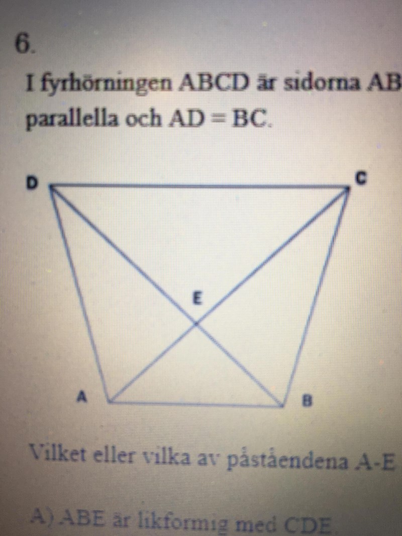 I fyrhörningen ABCD är sidorna AB och DC parallella och AD=BC.
