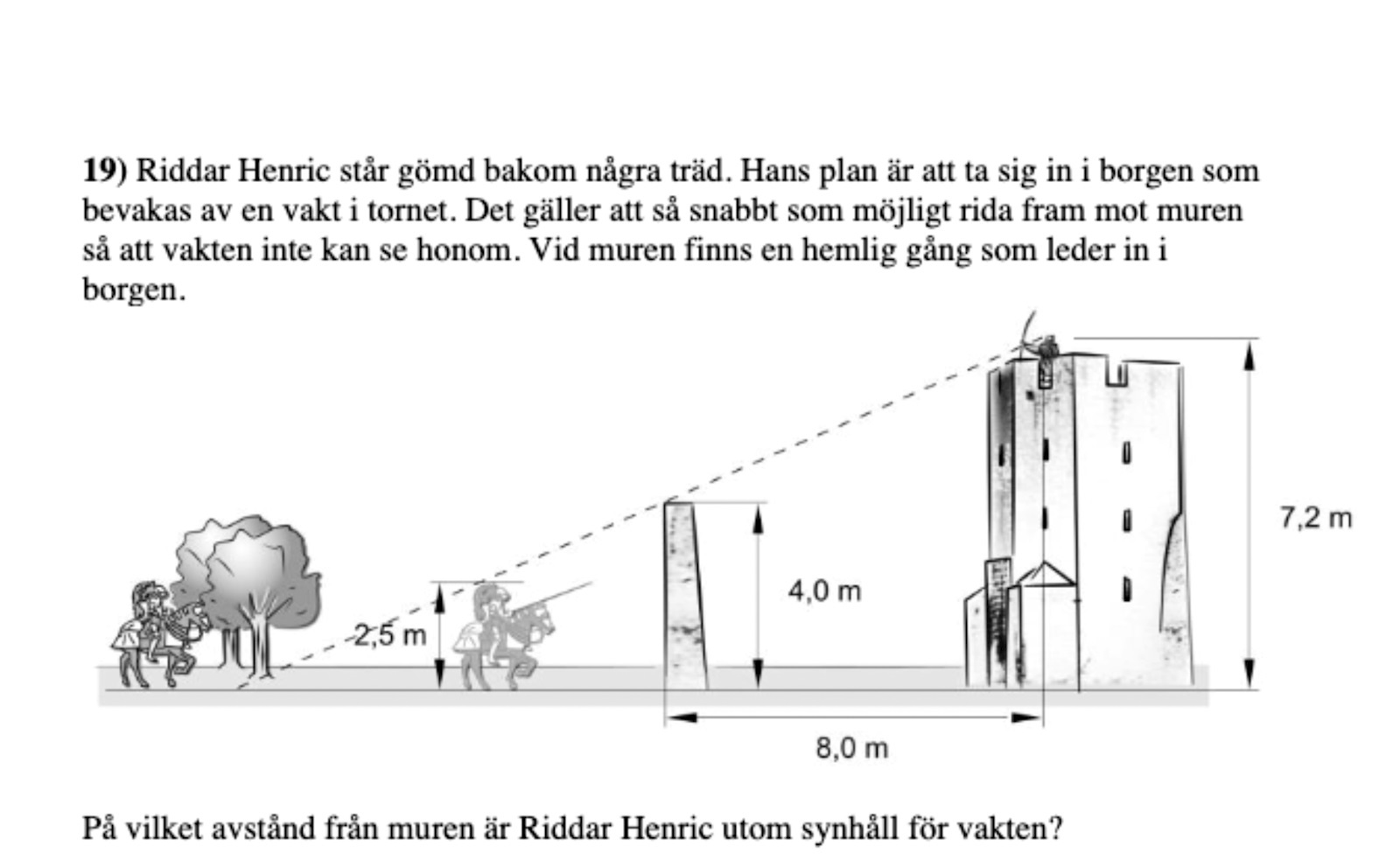 Beräkna m.2. Kalla avståndet från träden till riddaren för r
