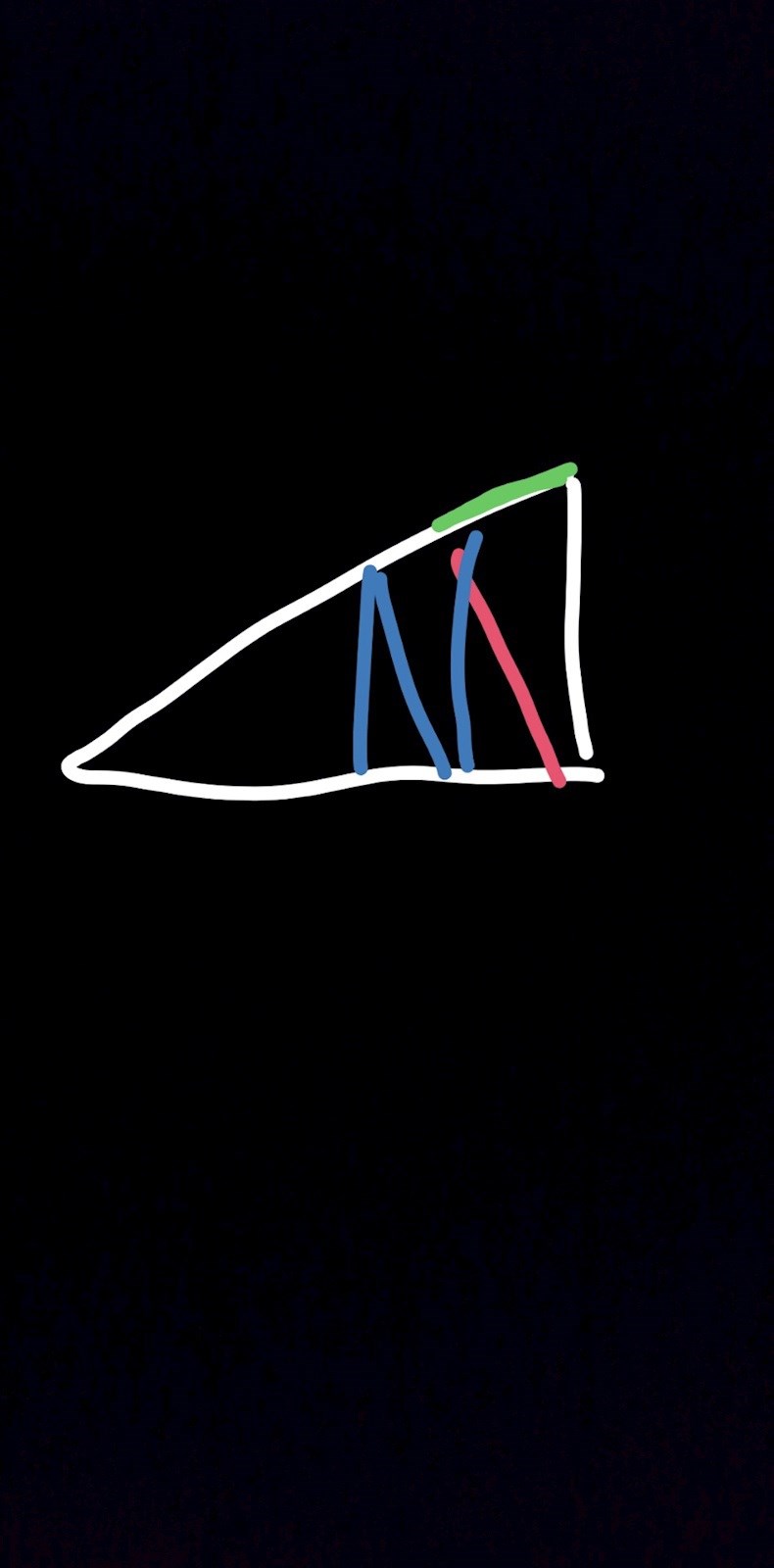 Kan du rita en bild med bara det första röda strecket från höger, och namn på den lilla triangelns sidor?