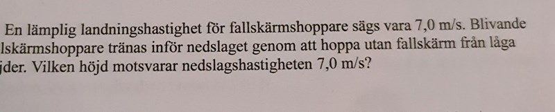 Med insatta värden får du 7,0 = 0+gt, dvs t = 7,0/g 0,71 s