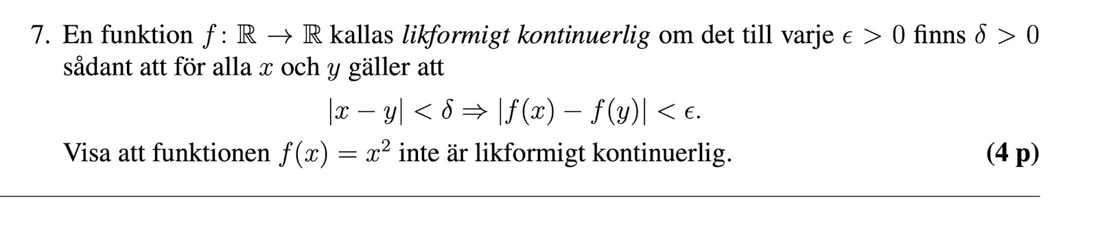 Problemet med f(x) = x2 är att om jag tar ett godtyckligt par kan jag alltid hitta ett x-värde där
