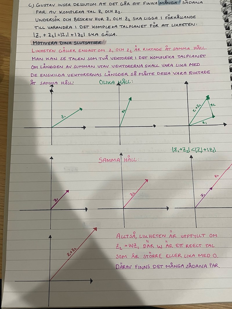 Kan du nu rita själv en situation där z1 och z2 är riktade åt samma håll och övertyga dig om att likheten i ett sådant fall blir uppfylld?