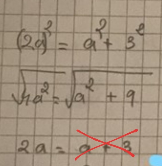 Jag ser på det du gjort att du ibland är lite förvirrad över vad som händer med kvadratroten när man har en summa med termer som är kvadrater. Det är t.ex inte sant att