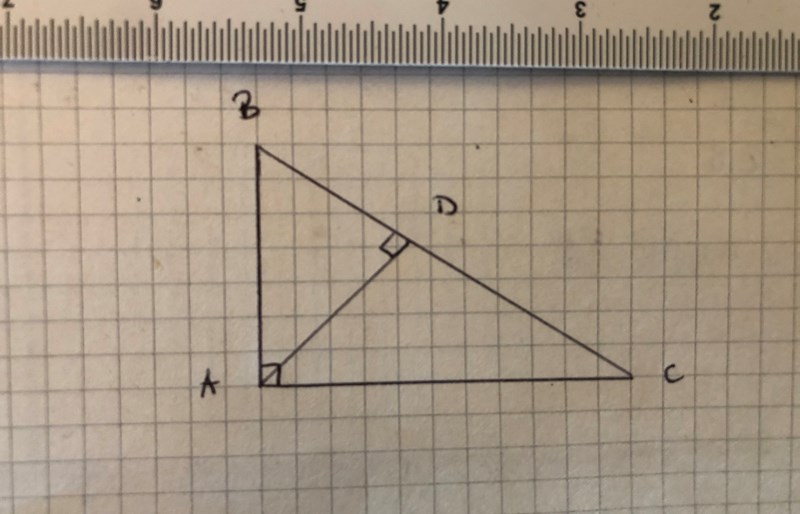 Du har inte två utan tre likformiga trianglar - ABC, ABD och ACD. Jag skulle börja med att rita upp alla tre trianlarna på damma håll, t ex så att den räta vinkeln är nere till vänster. Sedan skulle det vara lättare att se vilka sträckor som motsvarar varandra i de olika trianglarna.