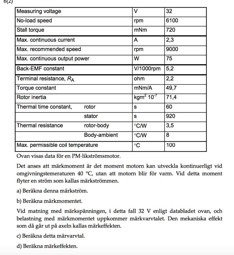 c) Hur beräknar man märkvarvtalet? Har fått fram märkmoment = 74,55Nm, E = 28,7V. Facit får det till 5500 varv/minut men förstår inte hur.