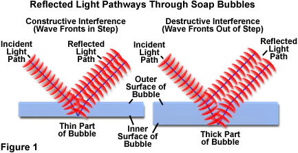 När skillnaden är noll (dvs mycket mindre än en våglängd) måste såphinnan bli mörk, eftersom det finns nästan inga molekyler där. I modellen dör reflektionen orsakas av en yta, måste man då ta med fasbyte.