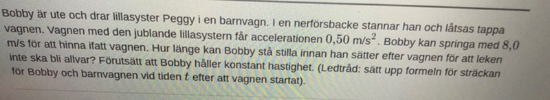 Rita ett s-t-diagram. (Ett v-t-diagram först om du vill.)