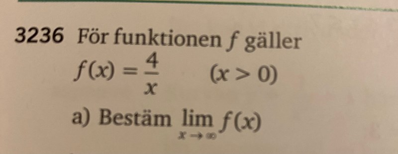 Det här med att ”Limes går mot oändligheten” fattar inte jag. Svaret på denna uppgift ska vara noll. Om det istället hade stått ”limes går mot 0” så hade jag förstått. Men det här med att den går mot oändligheten...