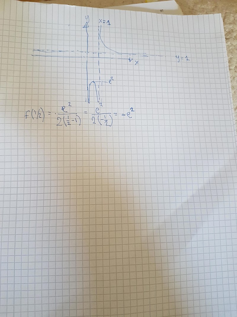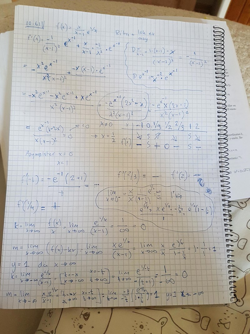 Låt f(x)=xe^(1/x)/(x-1) rita kurvan och bestäm ev lokala extrempunkter och sneda asymptoter. Lok extrempunkt är x=1/2 sned asymptot y=1 och jag har ritat x>0. Behöver hjälp med x<0
