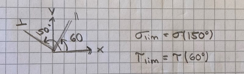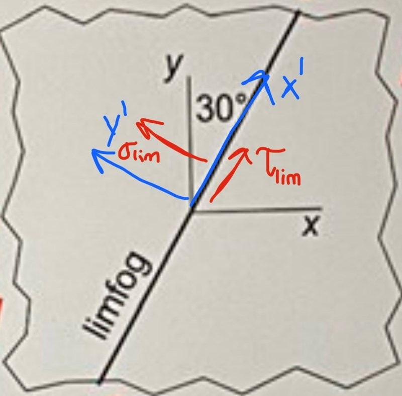 Okej! En sista fråga, hur vet man om det är σlim som ska roteras 30 grader eller 𝜏lim som ska det? Alltså rent visuellt, (eftersom man ska använda samma vinkel i formlerna)
