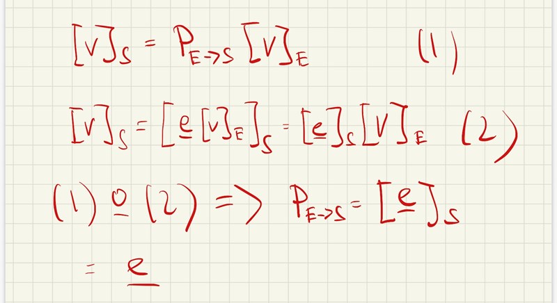 Man kan ju se T som basbytesmatrisen PE->S. E = bas av egenvektorer, S = standardbasen.