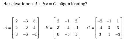 Det(b)= -45 vilket gör att den är inverterbar men det står inget om att x är en matris eller skalär vilket jag tycker är märkligt? För annars löste jag uppgiften som du skrev ovan Dr