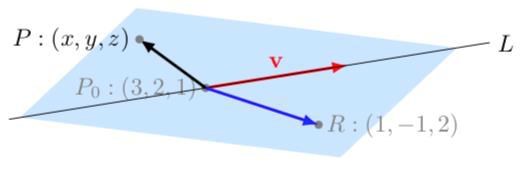 Bestäm ekvationen för planet som går genom punkten och innehåller linjen