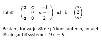 Precis, så då vet du via determinanten för vilka a som det finns en entydig lösning.