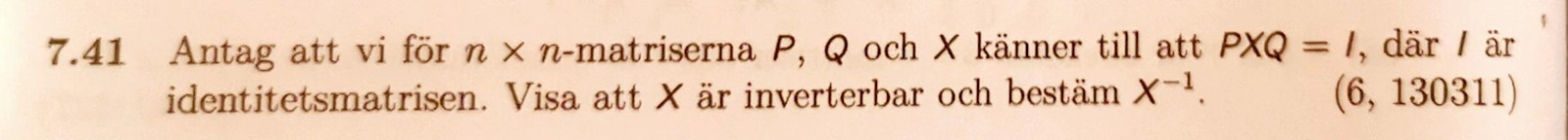 Om X är inverterbar är X-1=QP