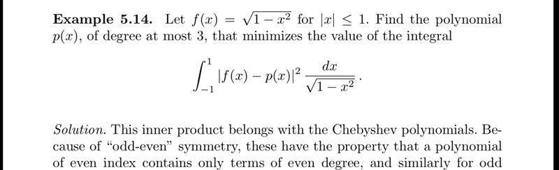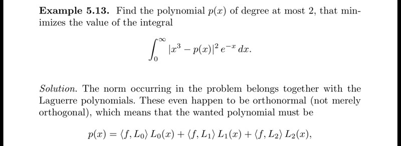 Hej, jag läser om L2 teori och boken tar upp tre polynombaser: Legendrepolynomen, Laguerrepolynomen, Hermitpolynomen och Chebyshevpolynomen. Sedan tar den upp exempel som alla är samma, jag visar två: