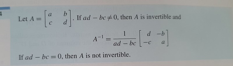 ad-bc0Aad-bc \neq 0 \iff A is invertible
