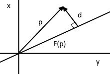Där är det vinkelräta avståndet från linjen till punkten.