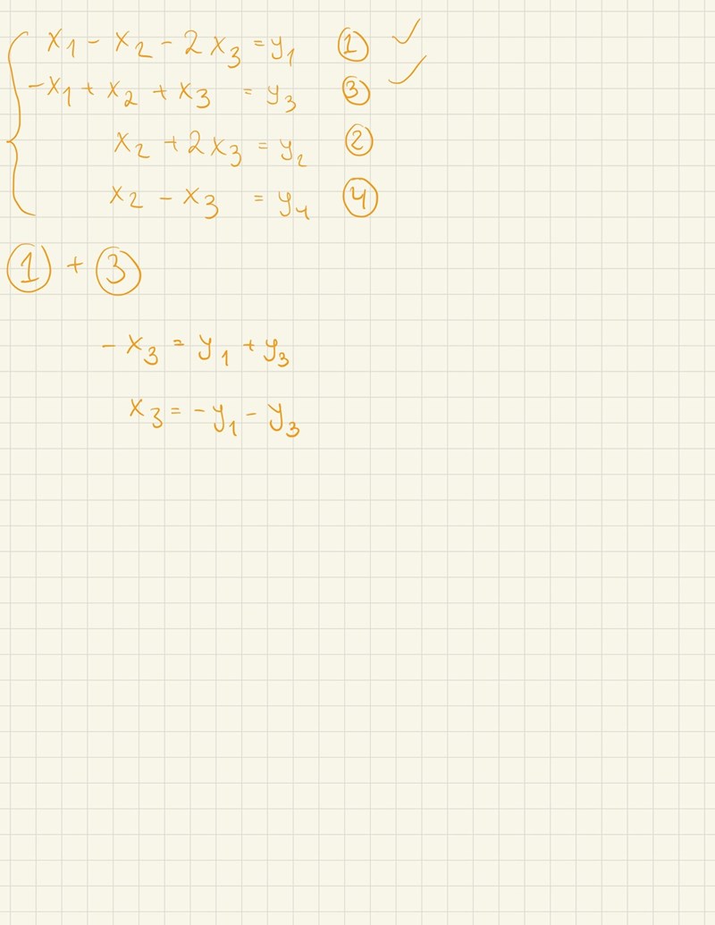 Jag vill också göra dig uppmärksam på att den här uppgiften löses enklare och mer systematiskt om man använder Gausselimination.