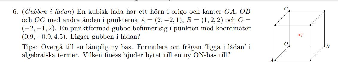 Men hur kollar jag om punkten eller vektorn OB som går från origo till punkten ligger i lådan/basen?