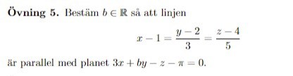 Linjär algebra: Bestäm b så att linjen är parallell med planet