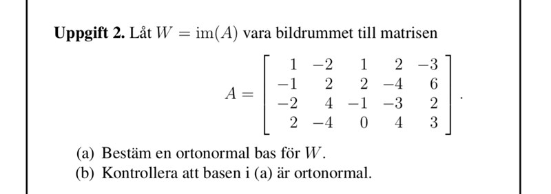 Jo jag glömde tillägga det att om det finns ett tänkt syfte med uppgiften så måste det vara att använda Gram schmidt (vi gick igenom det precis), men som sagt tycker jag inte att det behövs.