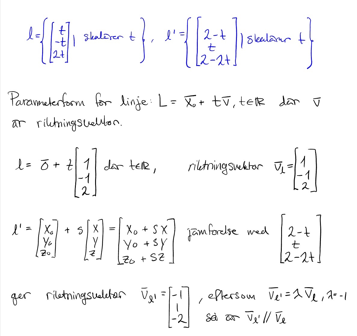 Eller nej då är det ju bara samma linje bara att t är olika för vektorerna. Hänger med nu!