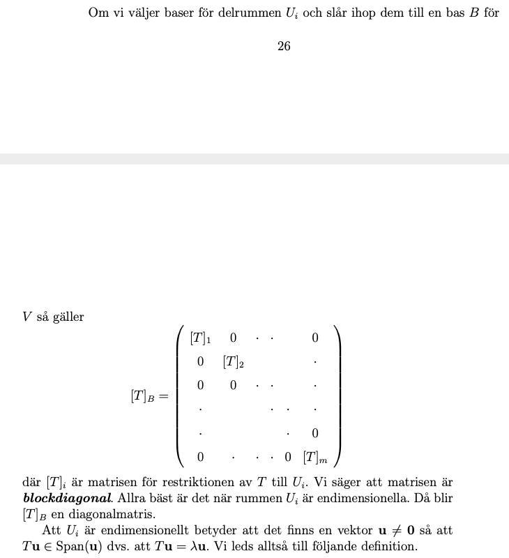 Linjär Algebra, Blockdiagonal och egenvektorer