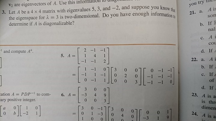 Ps kolonner utgörs av korresponderande egenvektorer. Din uppgift tycks alltså vara att identifiera egenvärdena samt korresponderande egenvektorer.