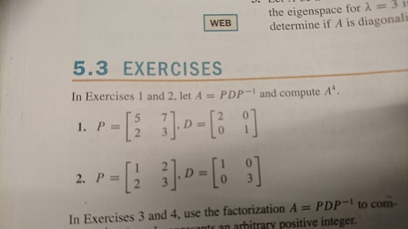 A^4 = PDP^(-1)PDP^(-1)PDP^(-1)PDP^(-1)= PD^4P^(-1)