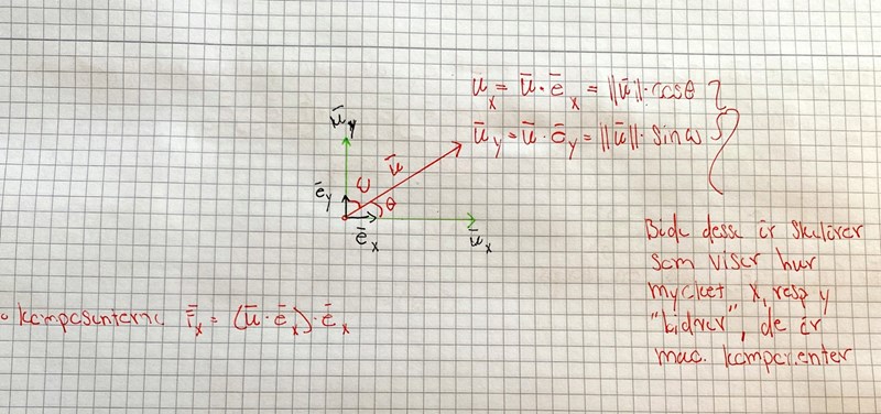 I figuren ovanför arbetar vi i och det finns därför en komponent i x-axeln och en komponent i y-axeln som "spänner upp" vektorn. Jag skulle därför föredragit att rita figuren på detta sätt: