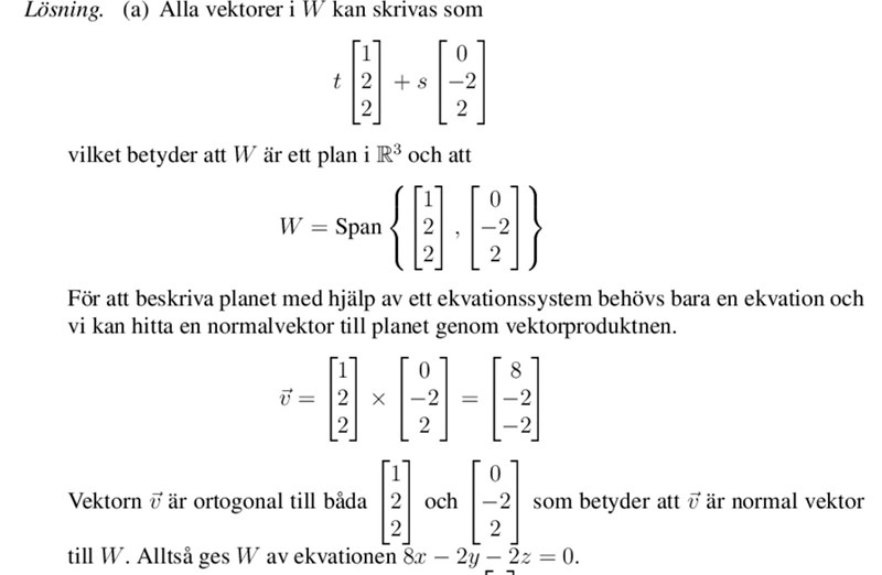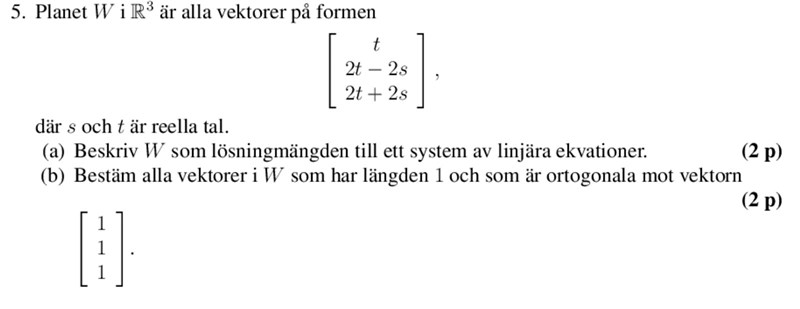 Linjär algebra, fråga a) lösningsmängd