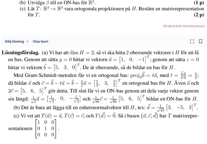 Hur löser man c) Jag använde ortogonala basen för att räkna ut med får fel? Jag fattar inte lösningen.